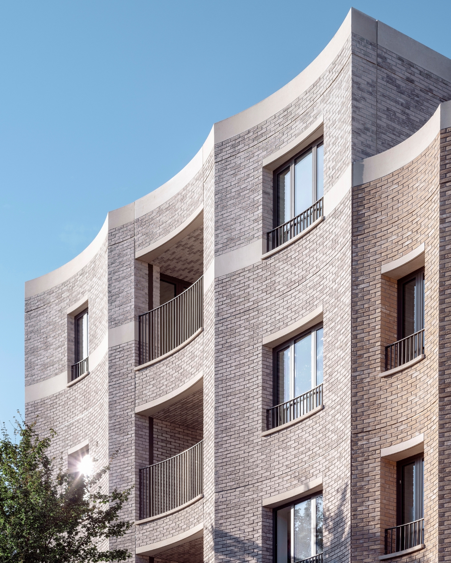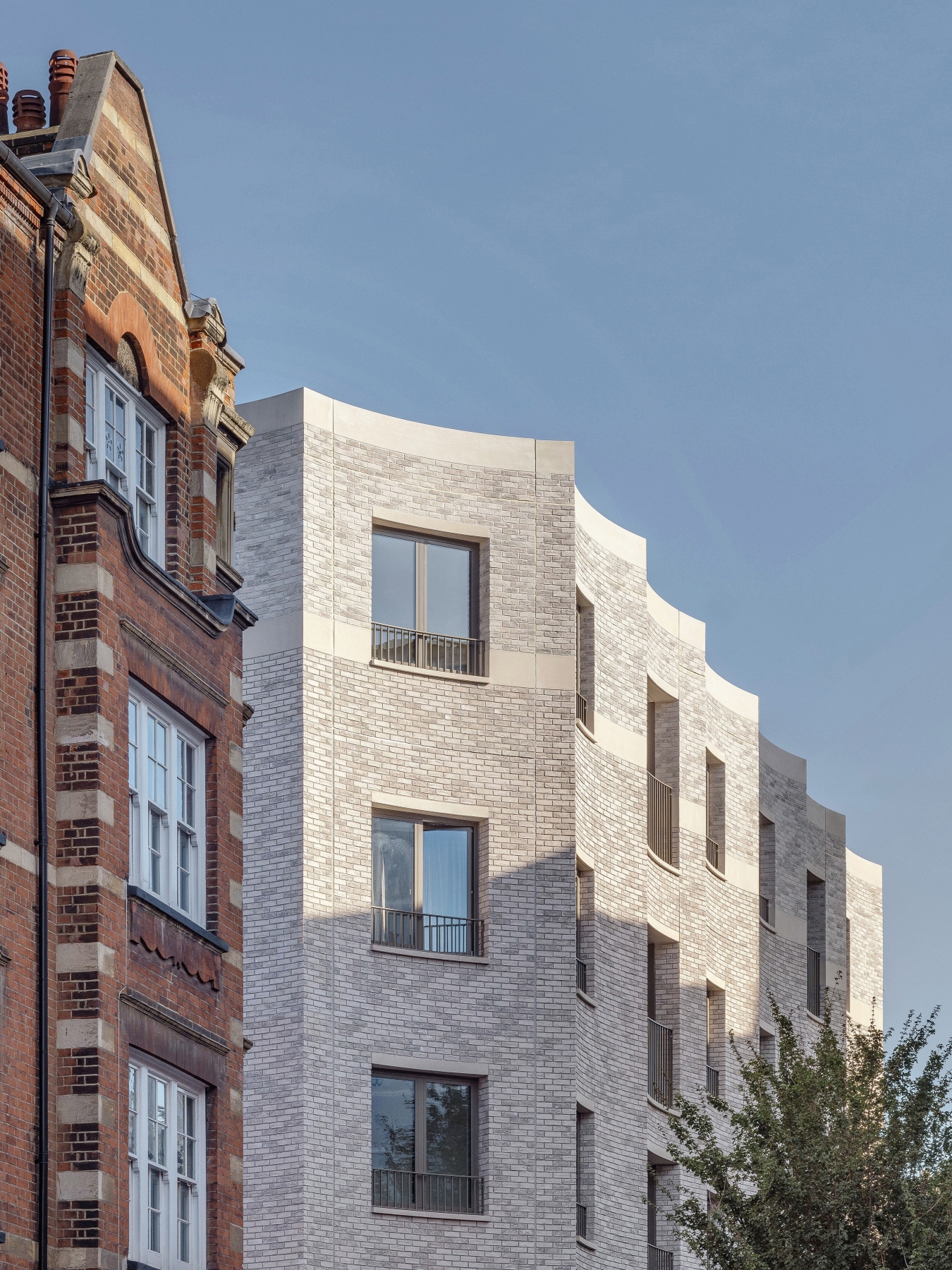 Taking inspiration from the surrounding late Victorian and Georgian terraces and Christ Church, the design reinstates the historic street frontage thereby reinforcing the character of the conservation area. Facades of fluted brick that subtly vary in dimension and tone of brick reflect the rhythms and proportions of the surrounding streets with a design that is contemporary yet rooted in its context. The dwellings are open plan to maximise daylight to all spaces with high ceilings and generous living space throughout.