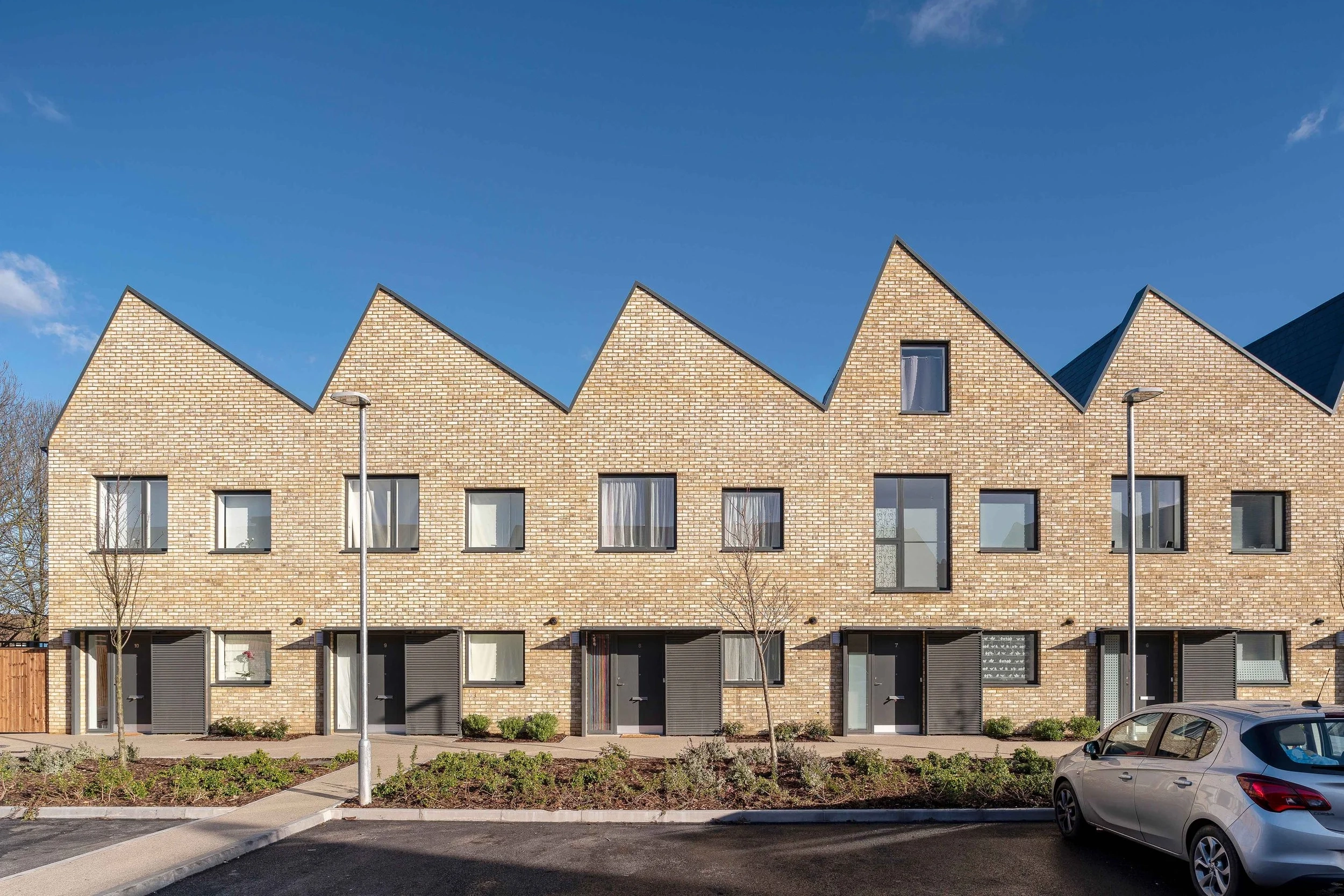 We developed a prototype single storey house that can be arranged in alternative layouts on different sites throughout the Borough. A monopitch roof with extensive glazing provides a good quality of height, space and natural light regardless of orientation. The additional height provided by this roof form allows the houses to sit comfortably within different urban situations and provides a generous double height space internally.