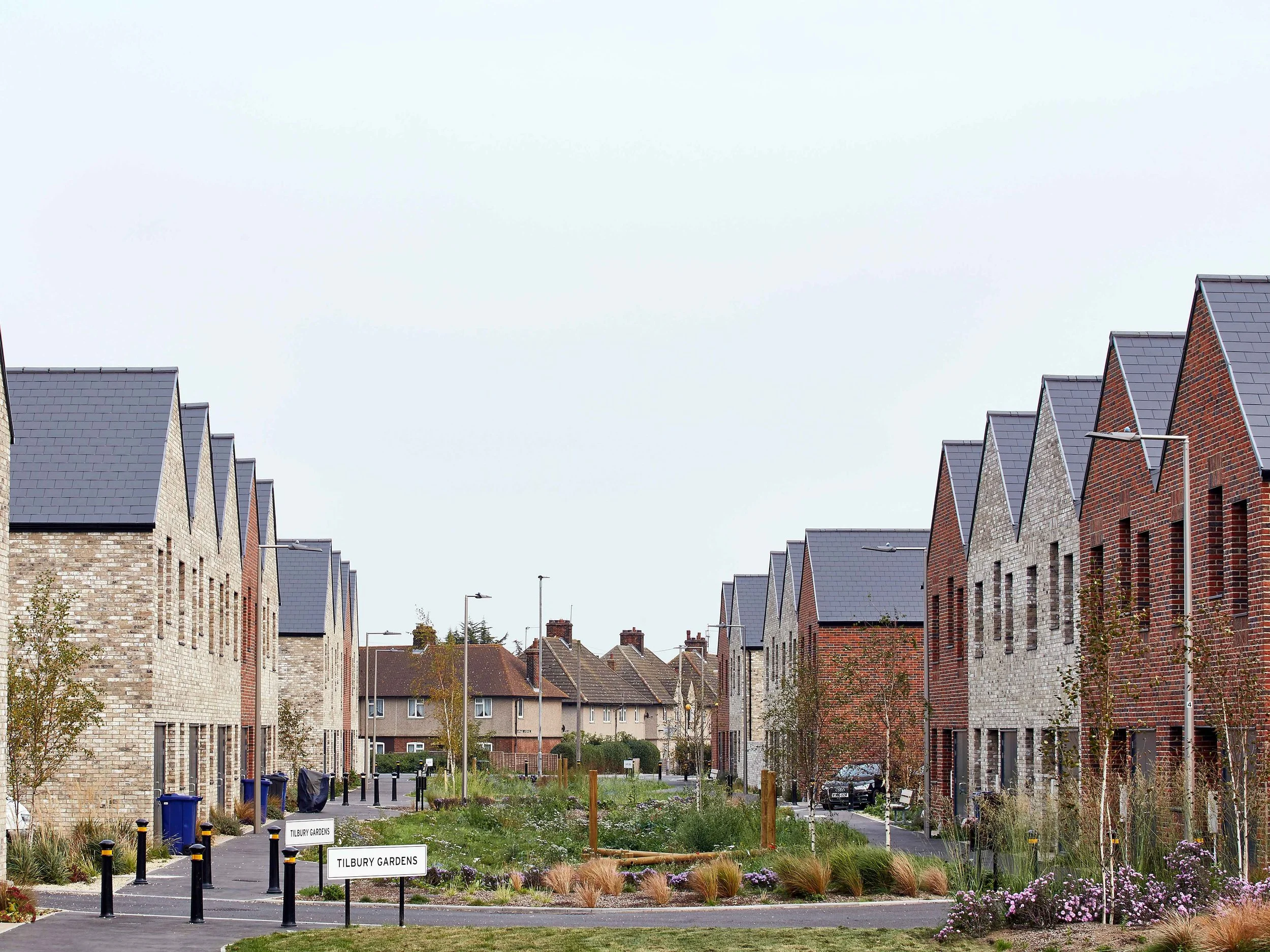 Within this layout three different street typologies have been developed; avenue, street and mews, each of which has its own character, dimension and housing typology in order to define a clear sense of place throughout the development. One of the two avenues is a linear green park that provides important amenity spaces as well as sustainable drainage system for the site in this low-lying area of the Thames estuary. The linear park is aligned on distant views of the cranes of Tilbury docks, a reminder of the town’s heritage.