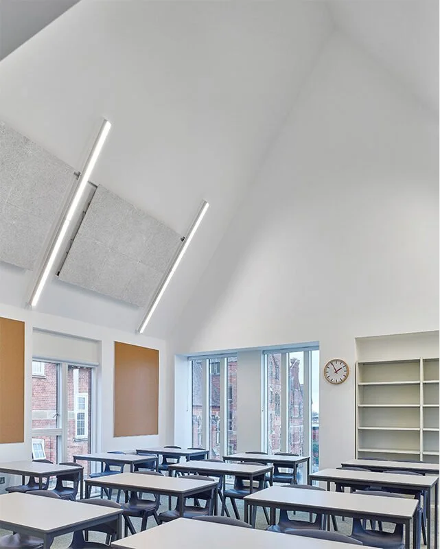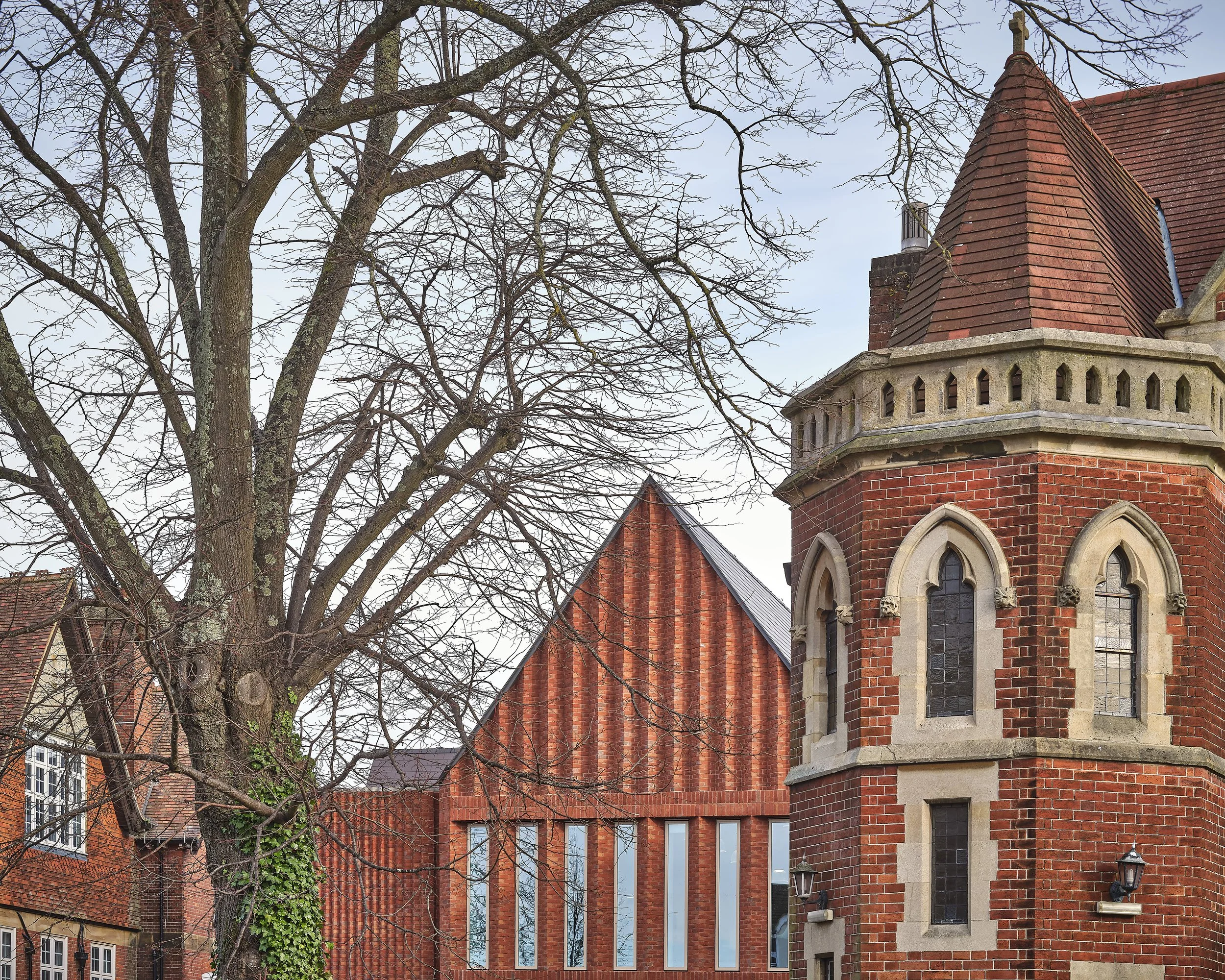 The design was developed from a careful analysis of the Gothic revival style of the original school buildings and comprises a design which uses a matching brick with a strong emphasis on verticality and repetition, in a similar manner to the existing buttressed hall. The result is an architecture which is both highly contemporary and respectful of its historic context.