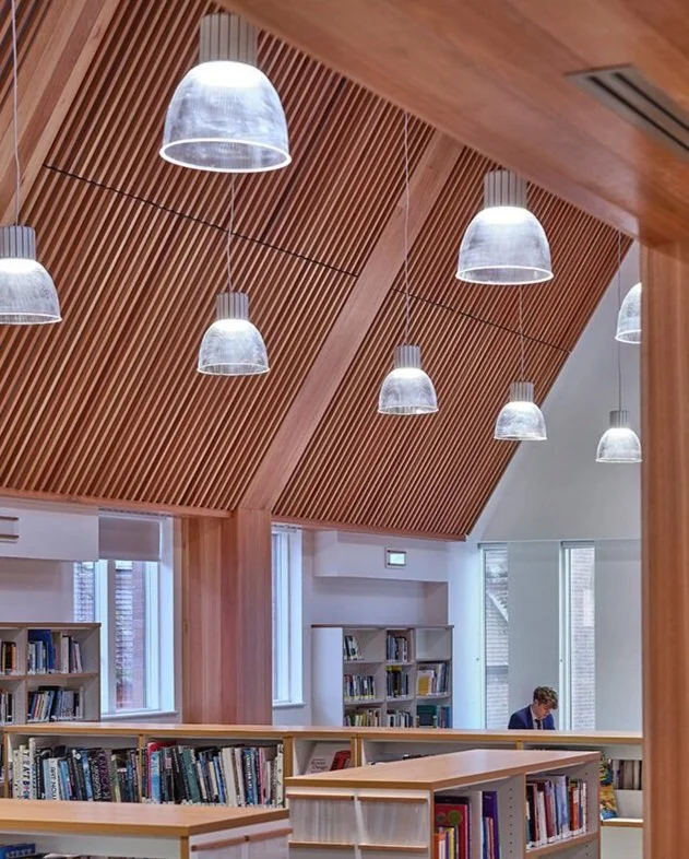 We were appointed to design a new 3-storey building in a key location on the public frontage, between two of the original Victorian buildings on the site. The new building contains a sixth-form centre, English department and library.